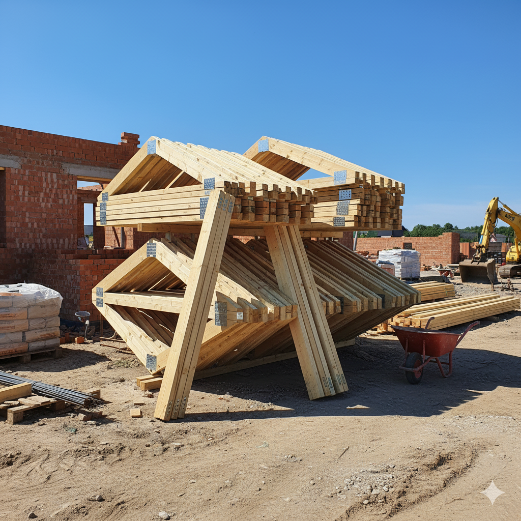 Mamy pełen asortyment: murłaty, krokwie, belki – wszystko, czego potrzeba. Na życzenie dostępne jest też impregnowane drewno.