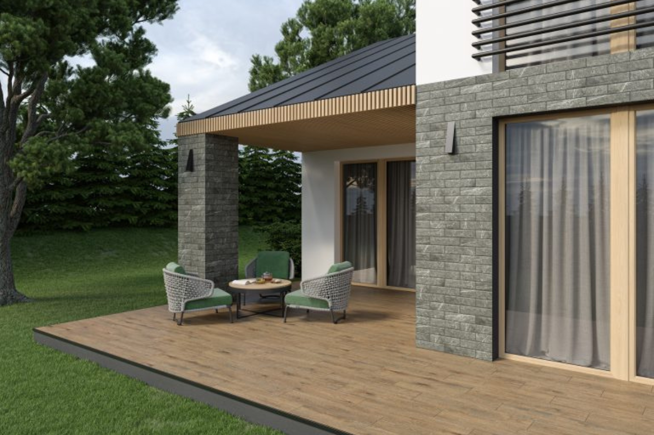 Kolekcja Cerrad Cerros to uniwersalny system płytek klinkierowych łączący estetykę kamienia z funkcjonalnością klinkieru. Płytki dostępne są w formacie 7,4 × 30 cm (ścienne/elewacyjne). Trzy stonowane warianty kolorystyczne — Bianco, Grys i Grafit — utrzymane w odcieniach od jasnego beżu, przez średni szary, aż po głęboki grafit, nadają przestrzeniom ponadczasowy, minimalistyczny charakter i otwierają niemal nieograniczone możliwości aranżacyjne.