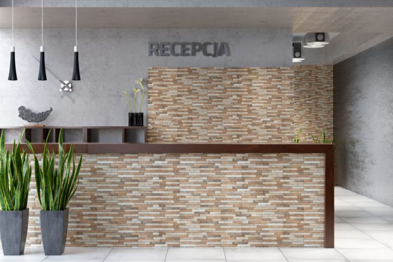 Kolekcja Cerrad Kallio to płytki ścienne o wymiarze 15 × 45 cm i grubości ok. 9 mm, które emulują naturalny, cięty kamień dzięki matowej, strukturalnej powierzchni imitującej nieregularności skały. Paleta obejmuje 6 harmonijnych odcieni: kremowy Cream, bursztynowy Amber, beżowo‑brązowy Terra, grafitowy Marengo, rdzawo‑szary Rust oraz ciemnoszary Tar – wszystkie z subtelną meandrą tonów wewnątrz jednego koloru